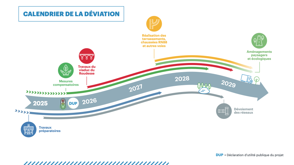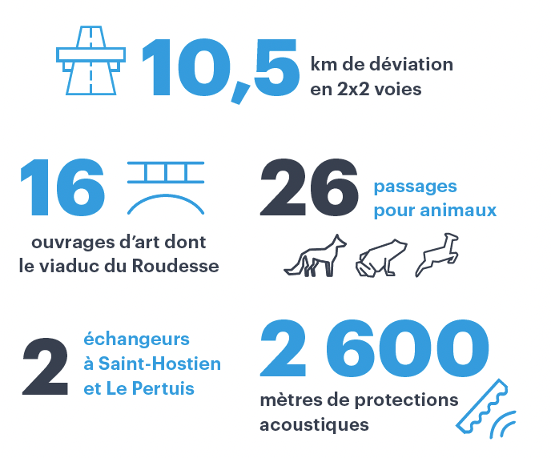 La déviation de la RN 88 est soutenue depuis longtemps par ses usagers et les riverains. Et pour cause ! Chaque jour, 15 000 véhicules, dont 1 500 poids lourds, traversent Saint-Hostien et Le Pertuis. La déviation va permettre de rétablir la sécurité de ce tronçon accidentogène et de préserver les habitants du bruit et de la pollution. Cette nouvelle infrastructure routière à 2x2 voies possédera un terre-plein central qui sécurisera les trajets des usagers. Sa réalisation est essentielle et sera menée de manière responsable en appliquant des mesures concrètes et durables vis-à-vis de l’environnement.
