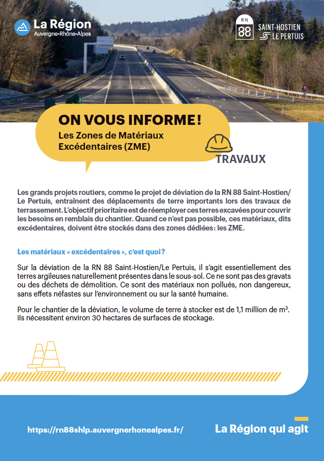 Les Zones de Matériaux Excédentaires (ZME) sont des espaces dédiés au stockage des matériaux excavés lors des travaux, lorsque ceux-ci ne peuvent pas être réutilisés directement sur le chantier.